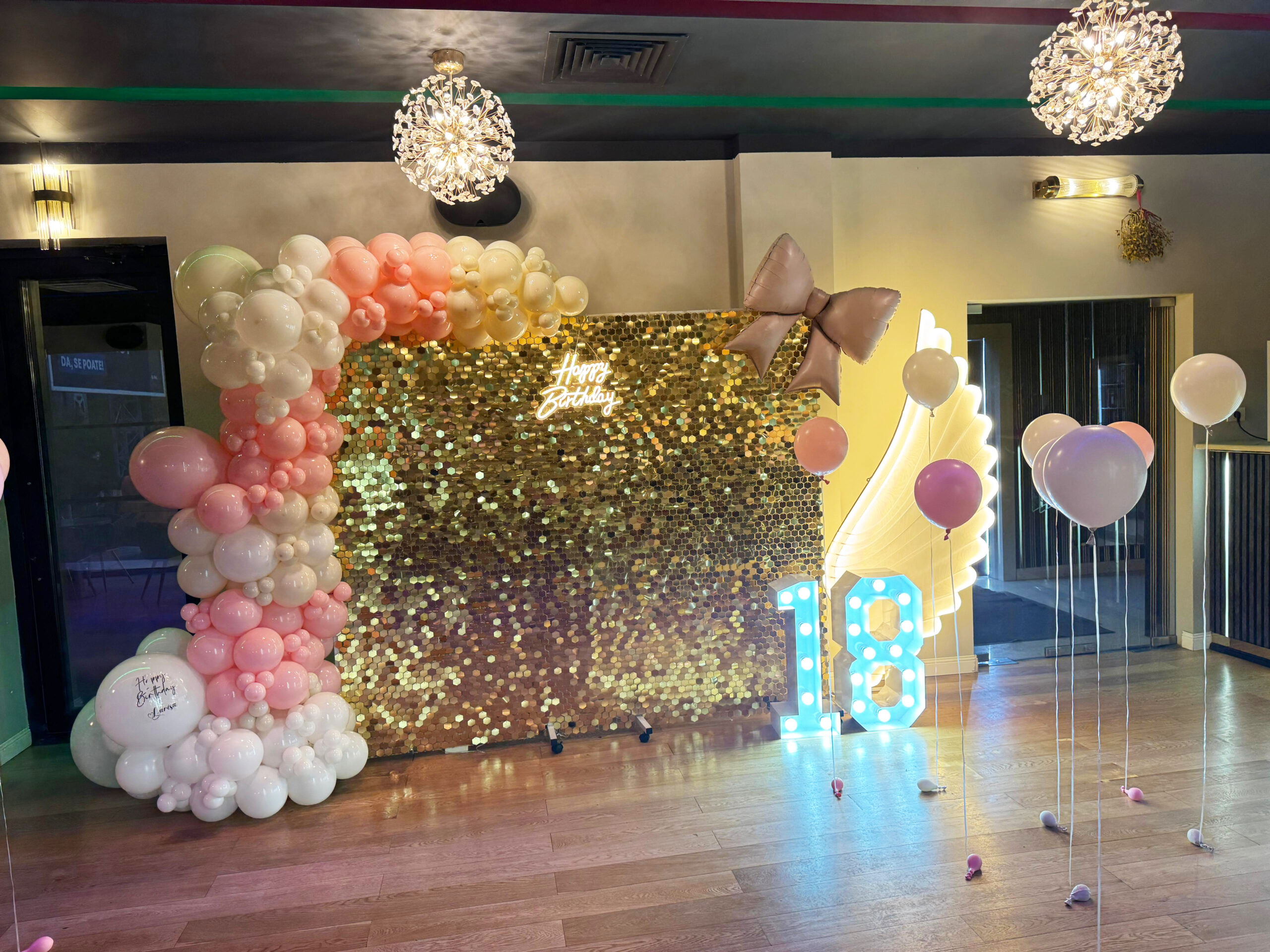 – element decorativ de impact, integrat în arcada de baloane